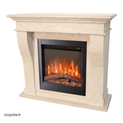 Kreta Mini Bioethanol Kamin Naturstein Weiß Mit Steindekor Und Medaillon