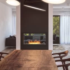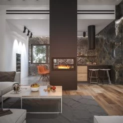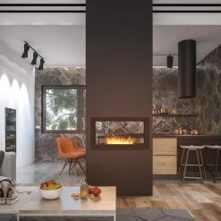 Der 2SIDE 900 Bioethanolkamin ist für den Einbau in die Wand zwischen zwei Räumen vorgesehen und somit perfekt als Raumtrenner geeignet. Auf Wunsch können wir die Tiefe frei konfigurieren (von 150 bis 350 mm) – die Wartezeit für ein einzelnes Projekt beträgt 6 Wochen (bitte sprechen Sie uns hierzu an).