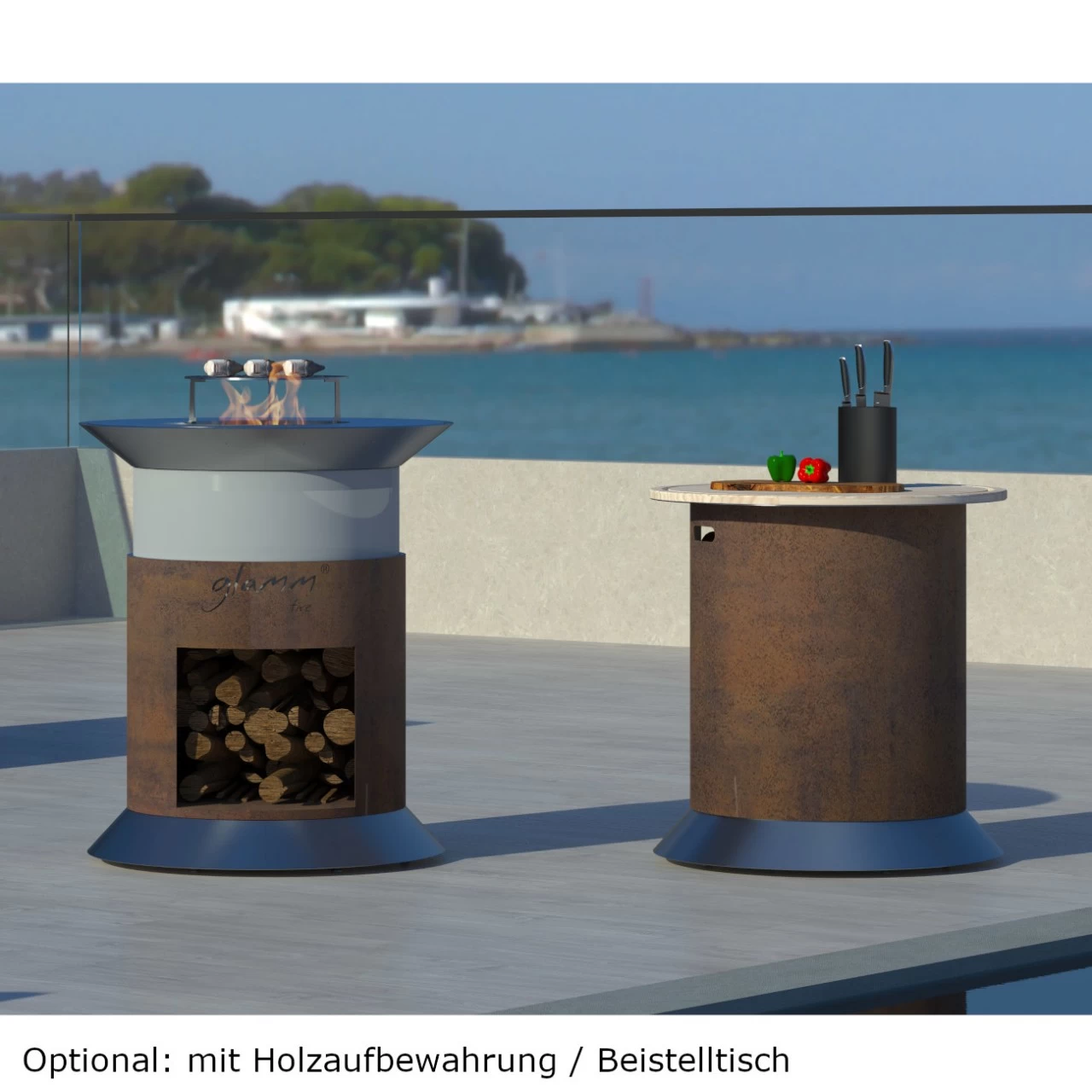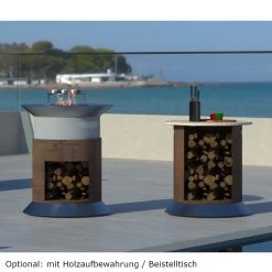 Stylische Holzaufbewahrung in Grill-Farbe – 360° Drehbar – Maße: Höhe: 88,3 cm x 85,0 cm Ø – Gewicht: 70 Kg