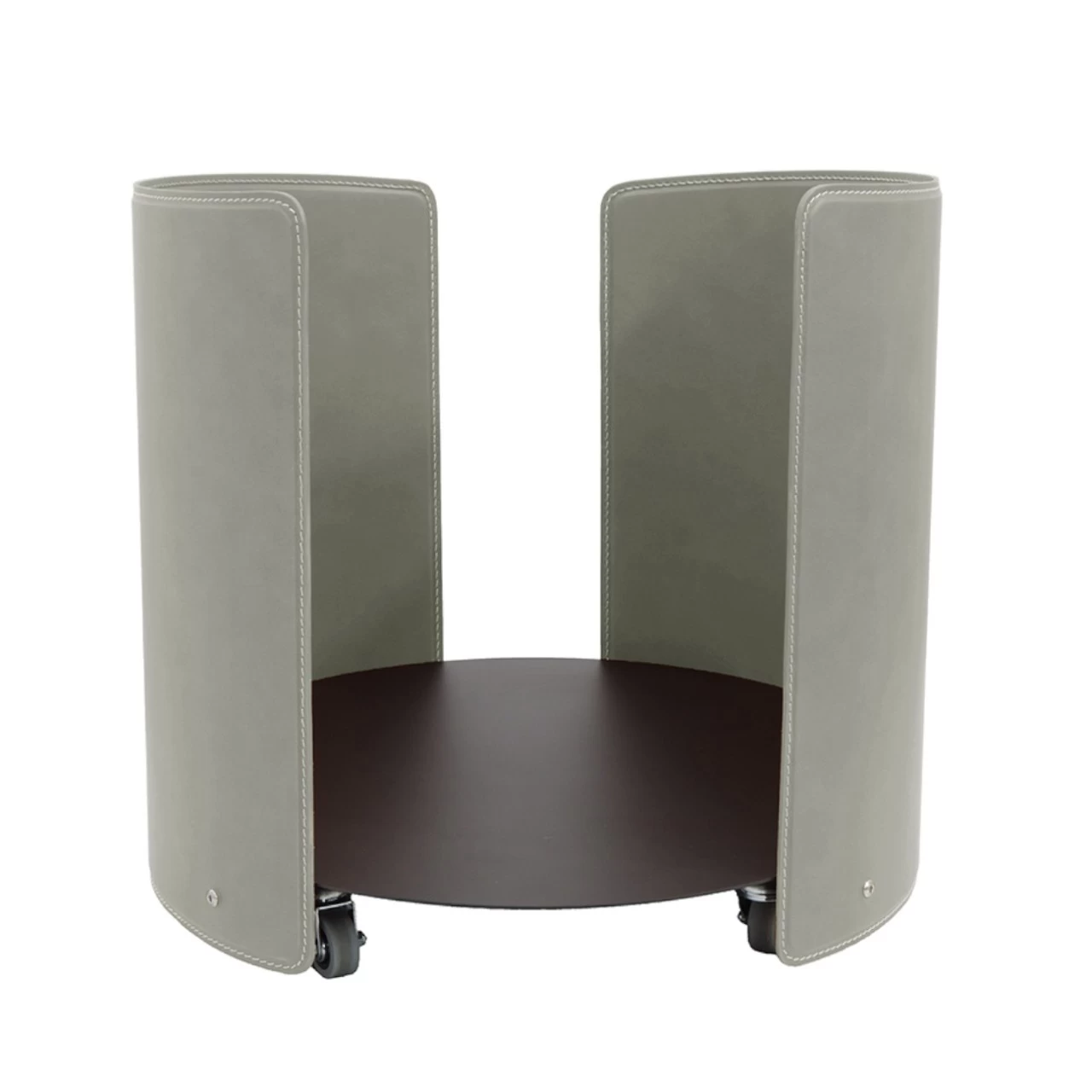 Der von Limac Design entworfene ALEYA ist ein Kaminholzhalter aus Stahl und regeneriertem Leder, ausgestattet mit 4 Gummirädern. Das patentierte Design wird in Italien von Handwerksmeistern für Sie auf Bestellung hergestellt.