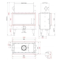 - Maße des Kamins: Höhe: 141,9 (+6,0/-4,0) cm x Breite: 102,0 cm x Tiefe: 54,8 cm