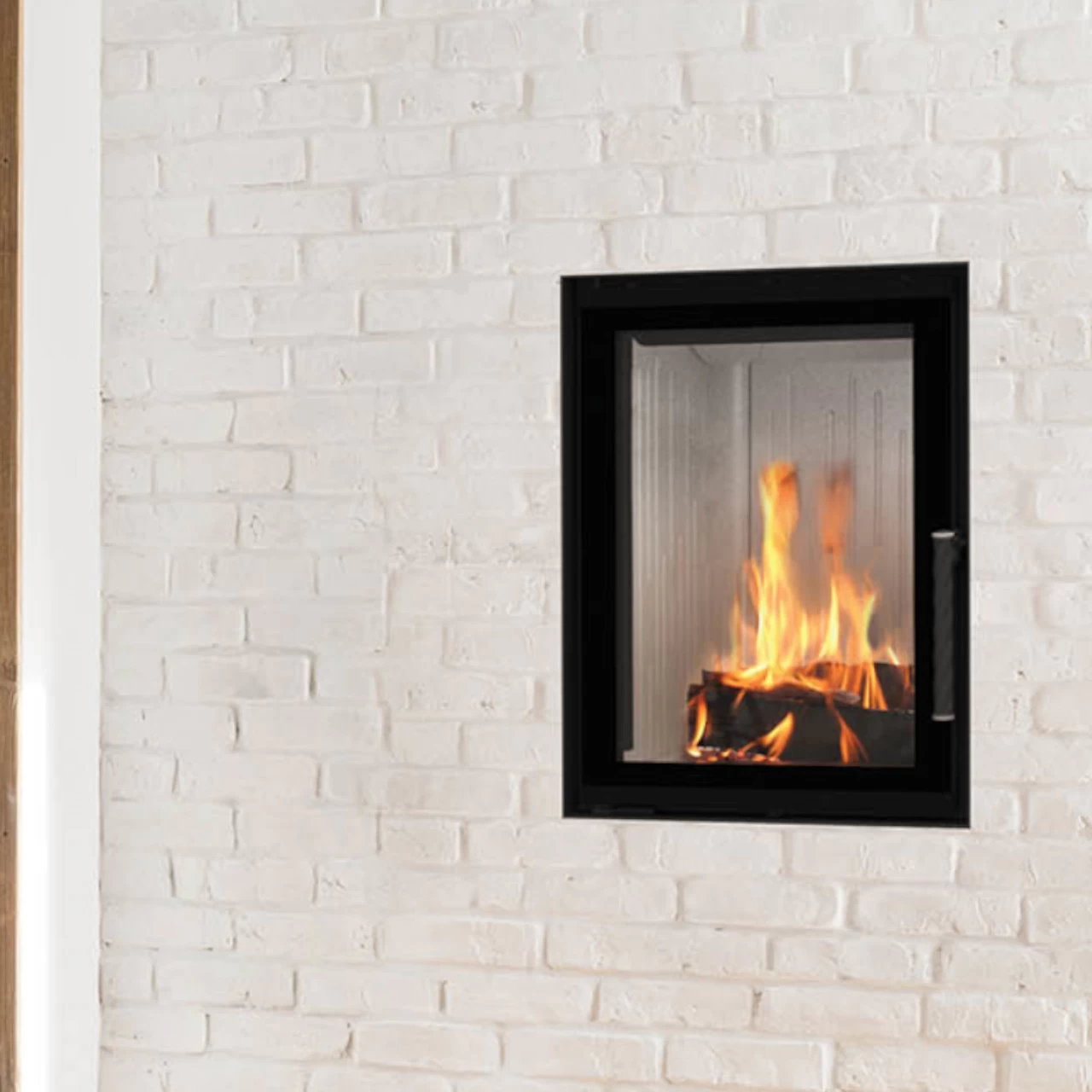 - Rahmenlose Designscheibe – Die Glasscheibe befindet sich vor dem Rahmen, dadurch wirkt die Glasscheibe größer und der Kamineinsatz eleganter