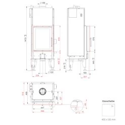 - Bitte sprechen Sie vor dem Kauf mit Ihrem zuständigen Schornsteinfegermeister. Lassen Sie Ihren Schornstein vor dem Einbau der Feuerstelle auf Verwendbarkeit prüfen. Beachten Sie außerdem die Bedienungsanleitungen und die Sicherheitsabstände.