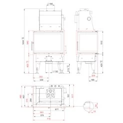 - Maße des Kamins: Höhe: 144,4 (+6,0/-4,0) cm x Breite: 67,7 cm x Tiefe: 45,7 cm