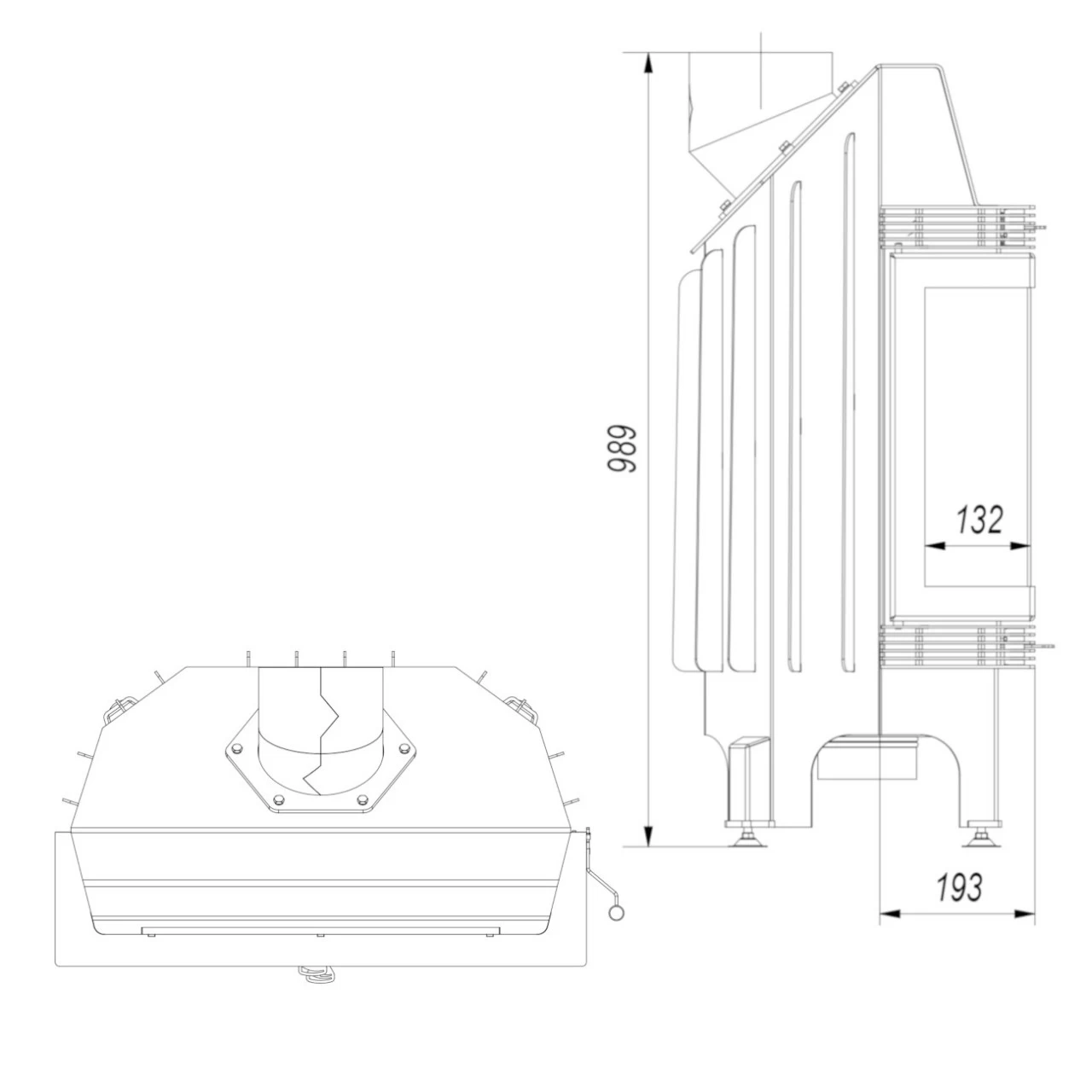 Modell: Kratki Blanka 12 Panorama Warmluft-Eckkamineinsatz mit Schwenktür Dreiseitig Verglast
