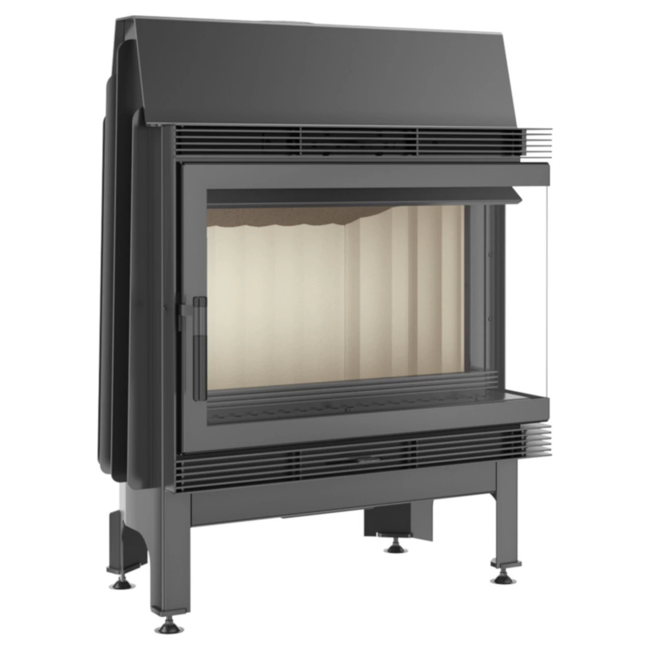 Modell: Kratki Blanka 670/570 Warmluft-Eckkamineinsatz mit Schwenktür Rechts Verglast