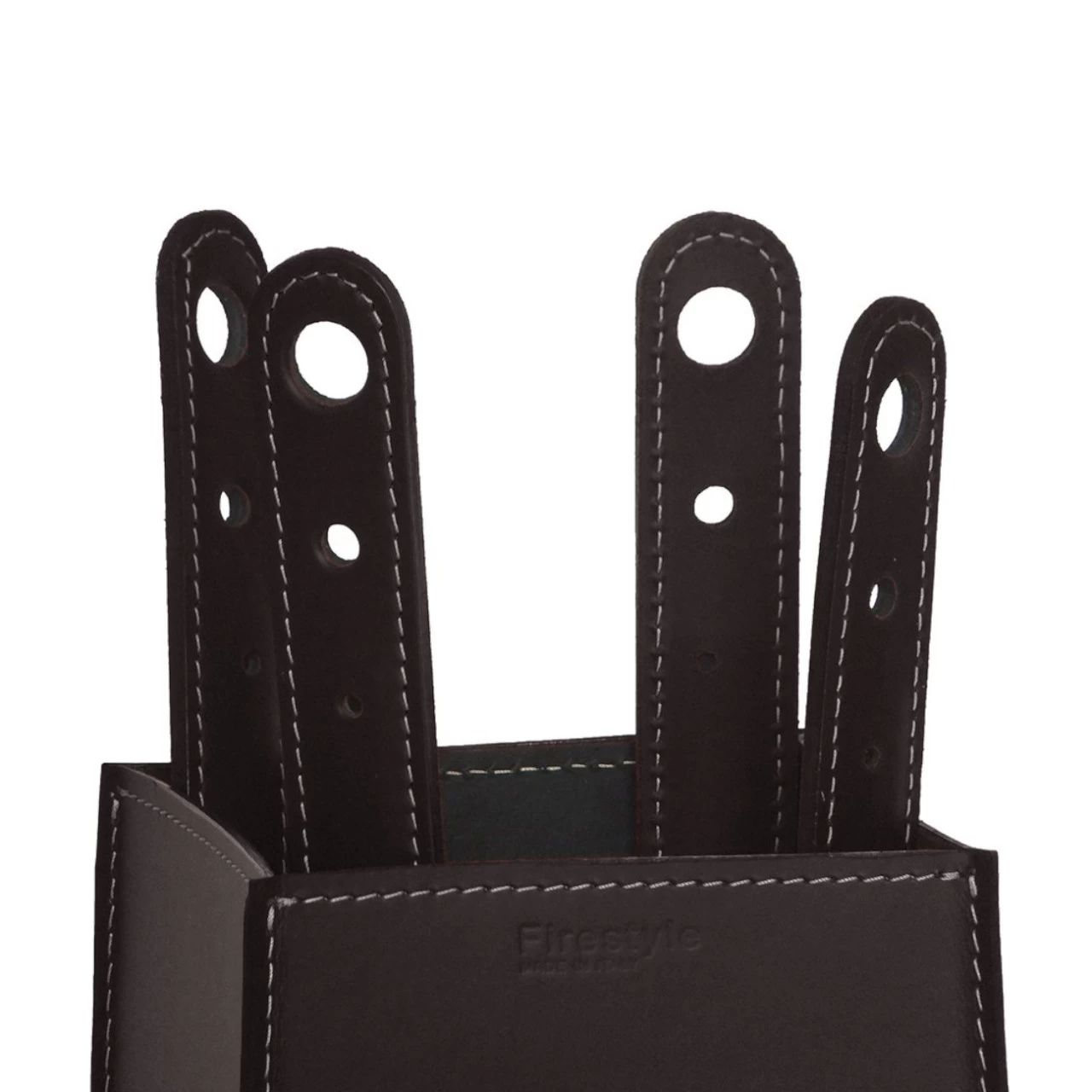 - Innen und außen aus zweilagigem regeneriertem Leder. (Kaminbesteckhalter)