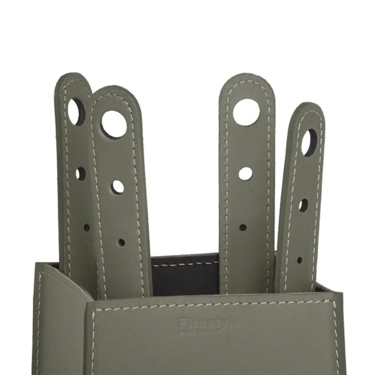 - Innen und außen aus zweilagigem regeneriertem Leder. (Kaminbesteckhalter)