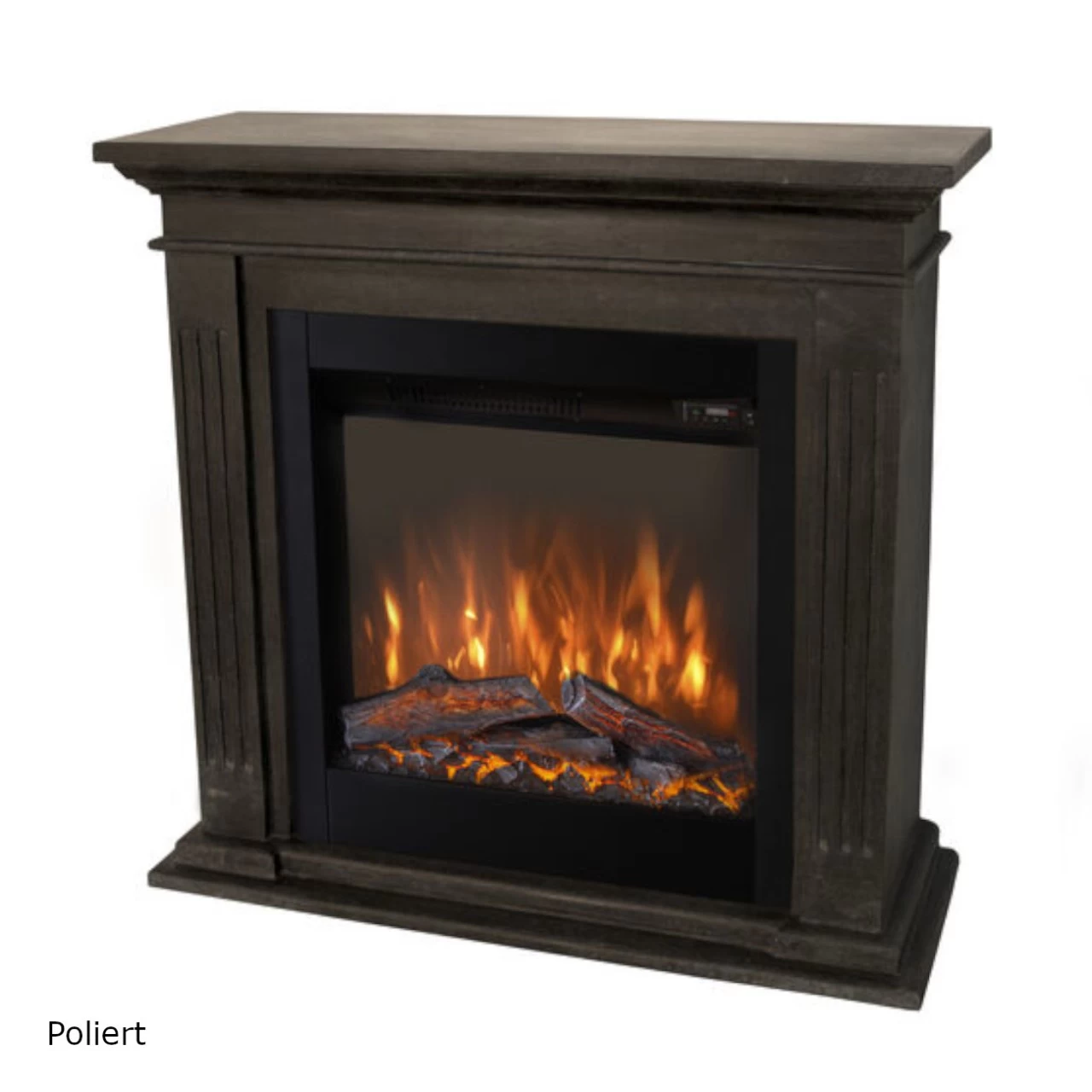 Modell: Cadiz LED Kamin Naturstein Schwarz mit Trivero 70 LED Kamineinsatz