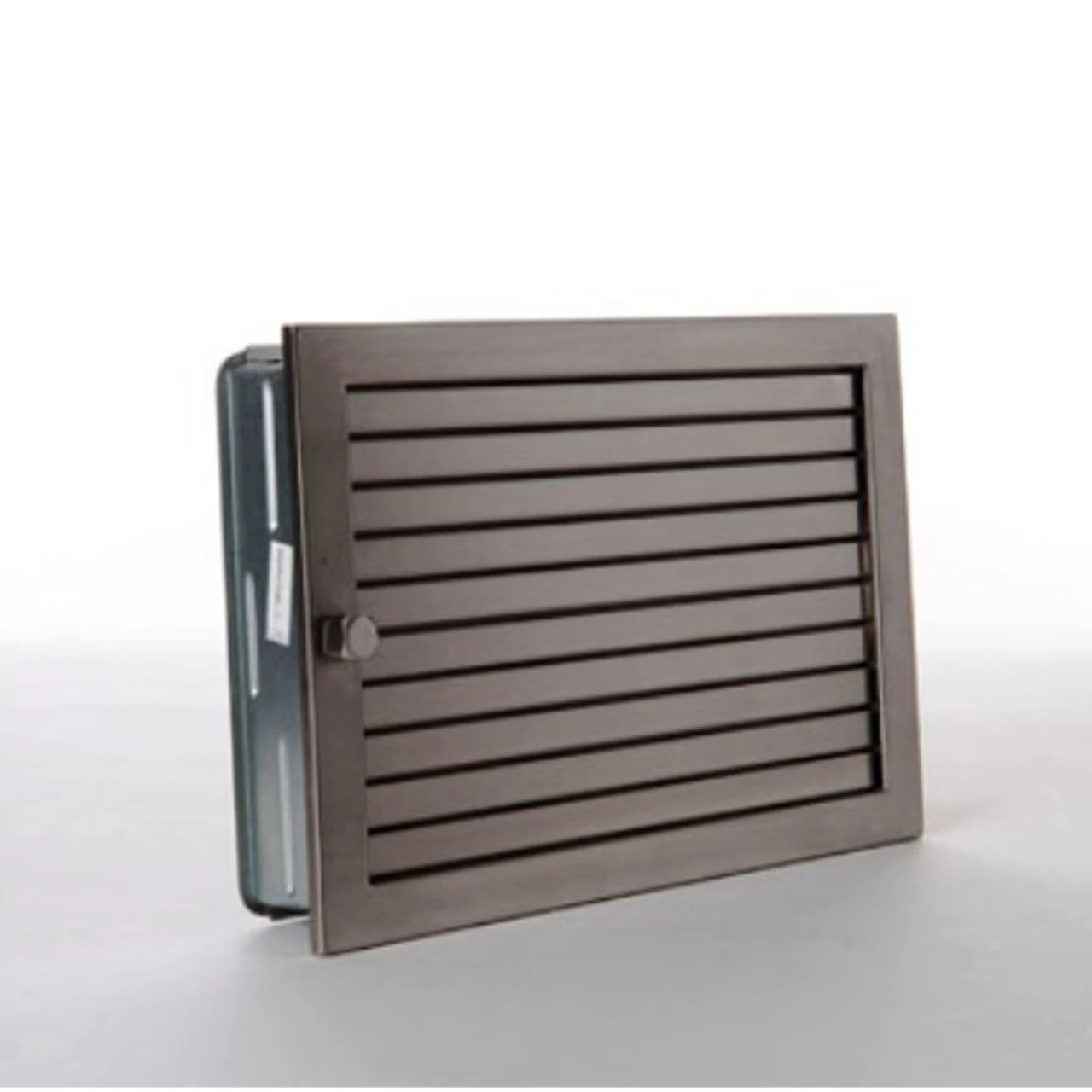 Warmluftgitter mit verstellbaren Lamellen aus Edelstahl in geschliffener oder hochglänzender Ausführung komplett mit Einbaurahmen aus verzinktem Stahlblech. Hochwertige Edelstahlgitter in geschliffener und hochglänzender Ausführung. Selbst die „Bratzen“ sind aus Edelstahl gefertigt