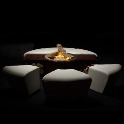 Die Feuerstelle Circus nutzt den Platz in Ihrem Garten und bietet Ihnen Komfort durch sein gemütliches Feuer und seine bequemen Sitze; die in der Nähe des zentralen Modells gelagert werden können und den Außenbedingungen standhalten. Genießen Sie Ihre Zeit mit Freunden und Familie, immer in der Nähe des Circus und all seiner Unterhaltung.“