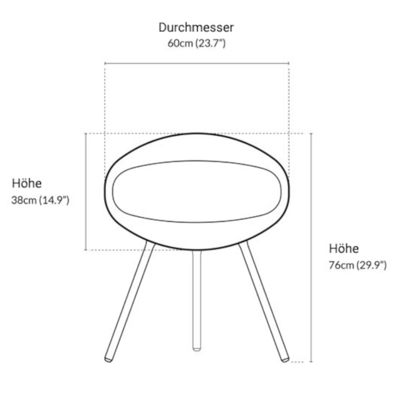 Maße Korpus: Höhe: 38,0 cm x Durchmesser: 60,0 cm