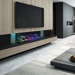 Die Ultra-HD-LED-Technologie verleiht dem Kamin ein tiefes und volles Flammenbild. Durch eine besondere Reflexionstechnologie werden Asche und Glut im Brennerbett täuschend echt nachgebildet. So entsteht, zusammen mit den entspiegelten Glasscheiben ein offener Holzfeuer-Effekt.