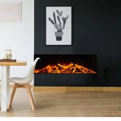 Das entspiegelte Glas sorgt für eine besondere Holzfeueroptik, als ob man vor einem offenen Kamin sitzt. Zusammen mit dem realistischen Flammenbild und der eingebauten Heizung kommt selbst für Holzfeuer-Romantiker das echte Kamin-Gefühl in Ihr Haus.