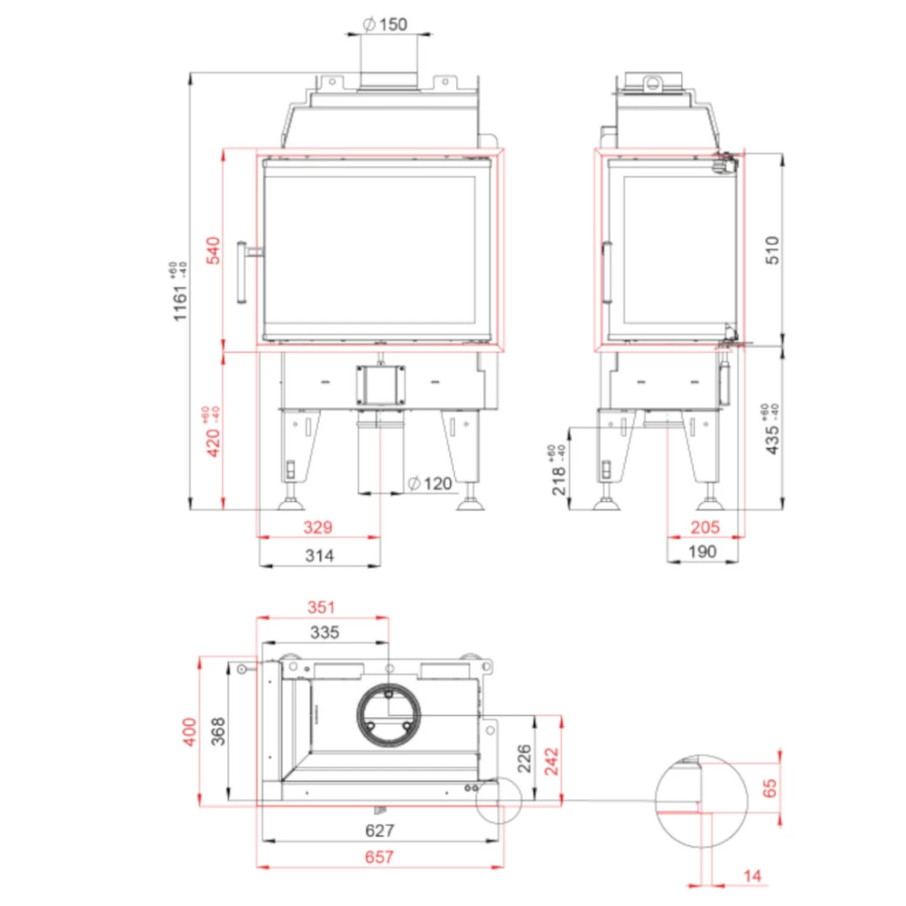 - Akkumulations-System BeF – durch das Anbringen von Speichersteinen an der Außenseite des Kamineinsatzes, haben Sie die Möglichkeit die Wärme, die der Kamineinsatz abgibt, über mehrere Stunden zu speichern, sodass diese, wenn das Feuer erloschen ist, in der Raum abgegeben wird
