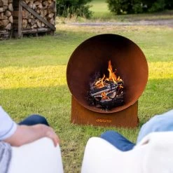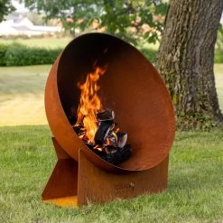 FeuerCampus365 Gartenkamin Feuerschale TALYN Satellit Cortenstahl – Windgeschützte Feuerschale auf kleinem Sockel
