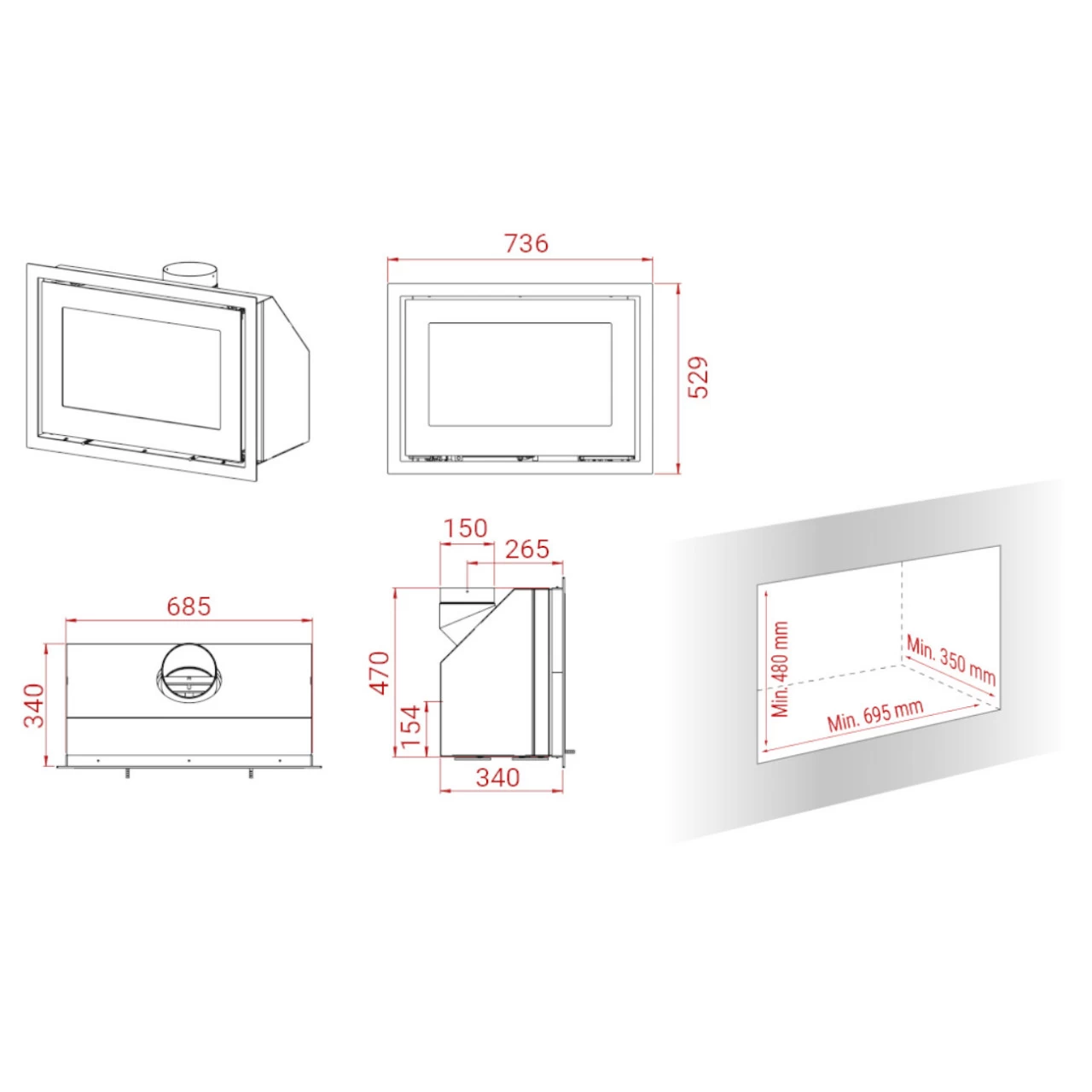 Hinweis: Bitte sprechen Sie vor dem Kauf mit Ihrem zuständigen Schornsteinfegermeister. Lassen Sie Ihren Schornstein vor dem Einbau der Feuerstelle auf Verwendbarkeit prüfen. Beachten Sie außerdem die Bedienungsanleitungen und die Sicherheitsabstände.