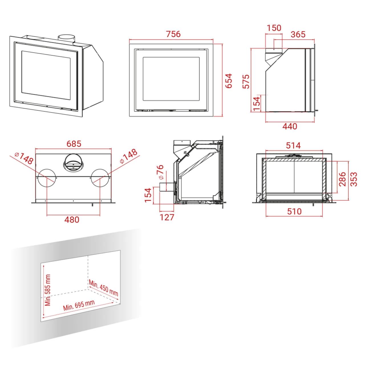 Modell: Lotus H570 Einbau-Kaminkassette 6 kW opt ext Luftzufuhr