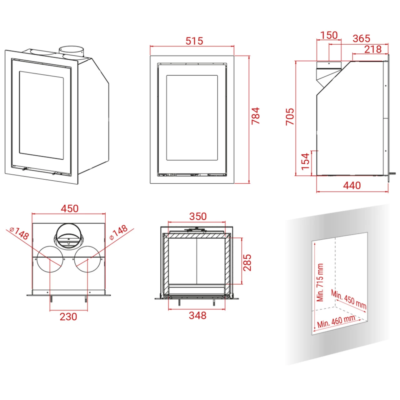 Hinweis: Bitte sprechen Sie vor dem Kauf mit Ihrem zuständigen Schornsteinfegermeister. Lassen Sie Ihren Schornstein vor dem Einbau der Feuerstelle auf Verwendbarkeit prüfen. Beachten Sie außerdem die Bedienungsanleitungen und die Sicherheitsabstände (siehe Downloadbereich).