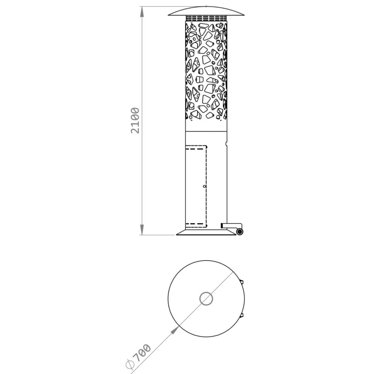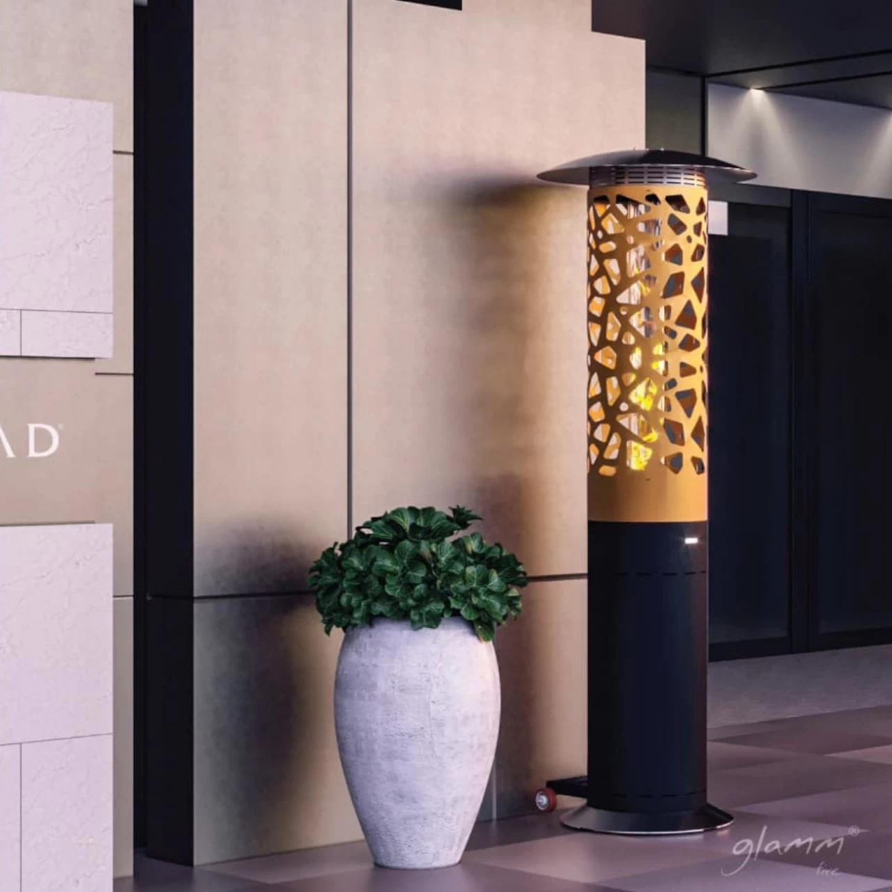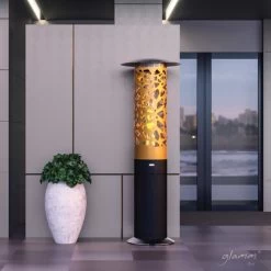 Der Heizpilz Tile-Hyperion zeichnet sich durch Details und sorgfältig gestaltete Geometrie aus, die es zu einem besonderen Stück machen. Die Flamme vibriert anmutig und demonstriert ihre Kraft durch absichtlich geschnittene Räume und Linien.