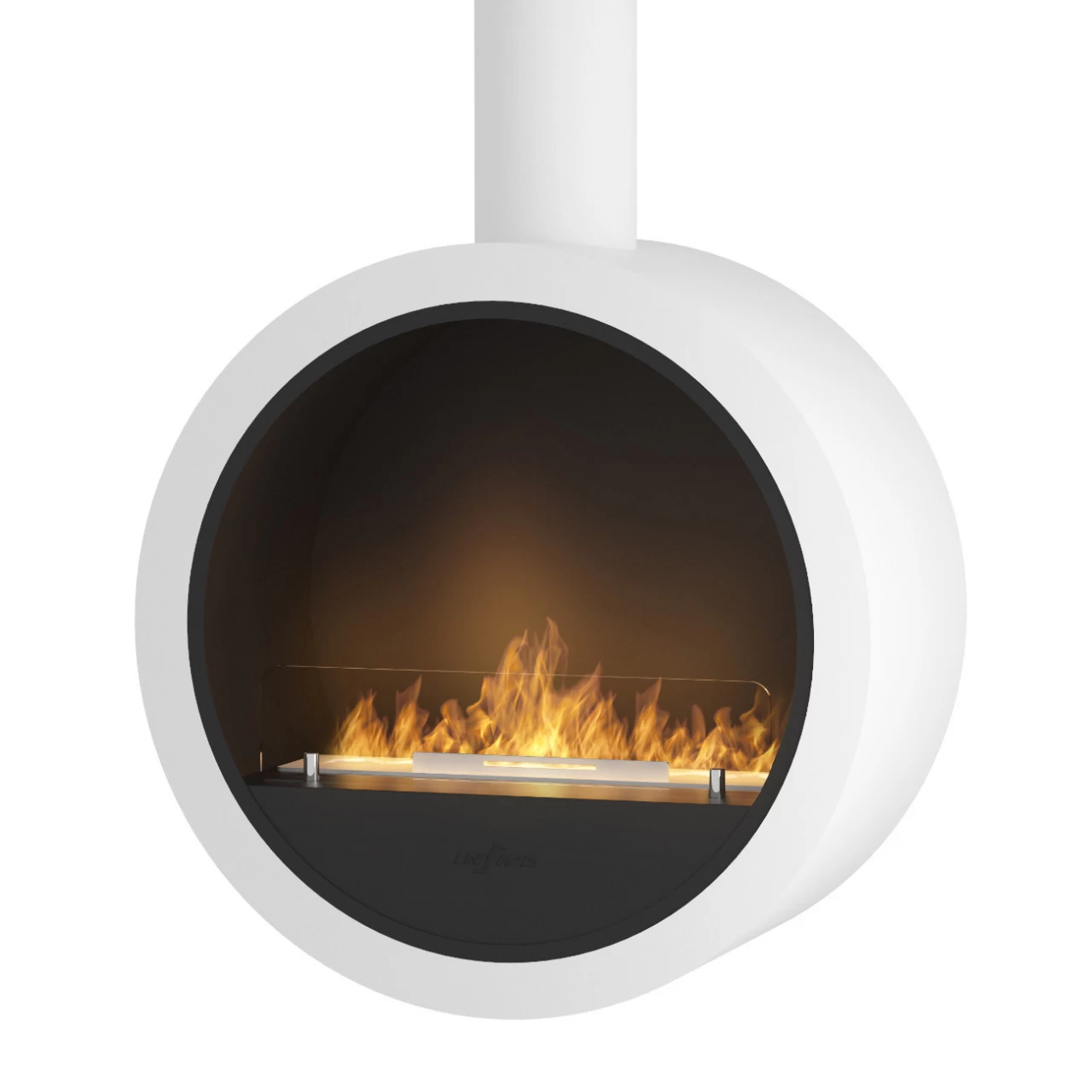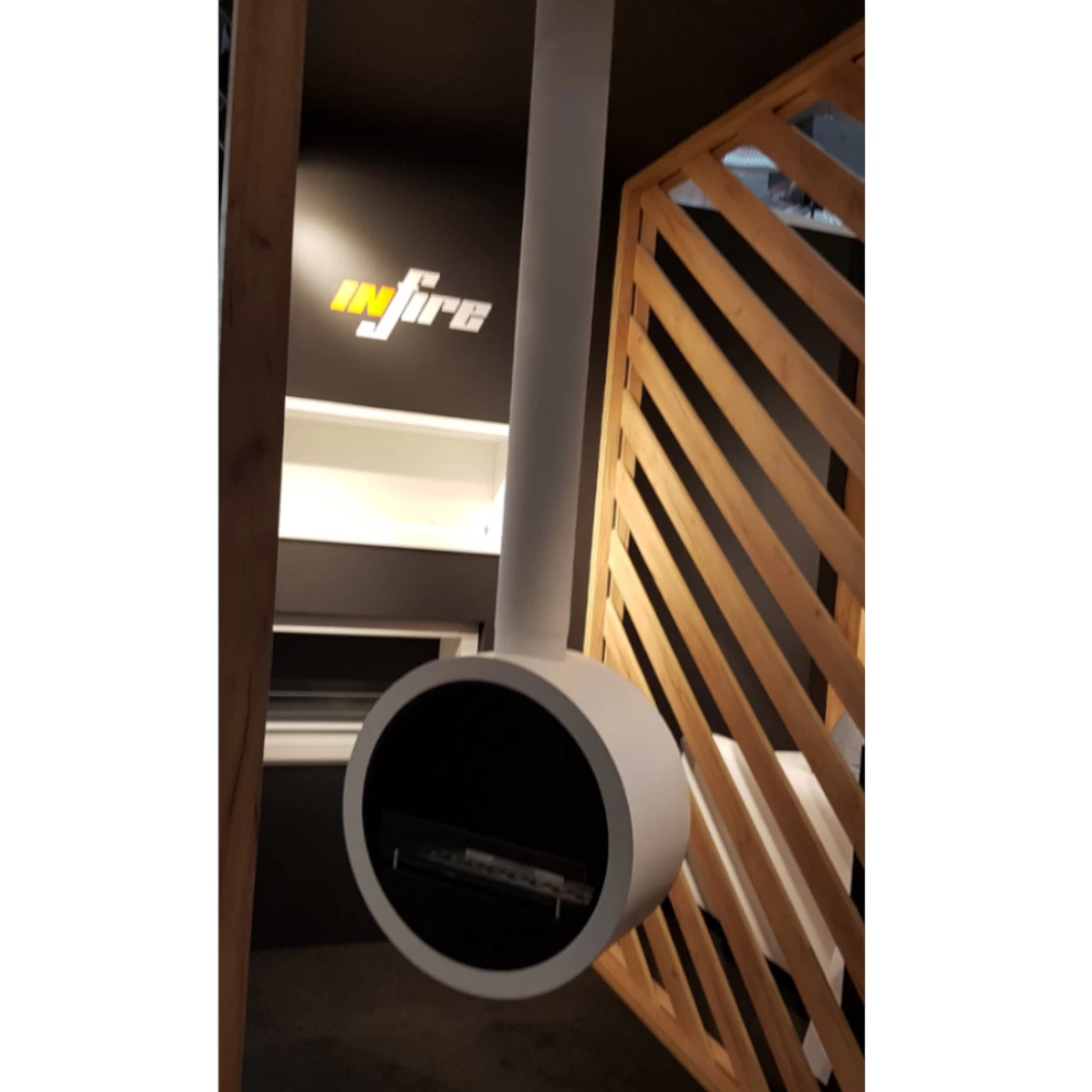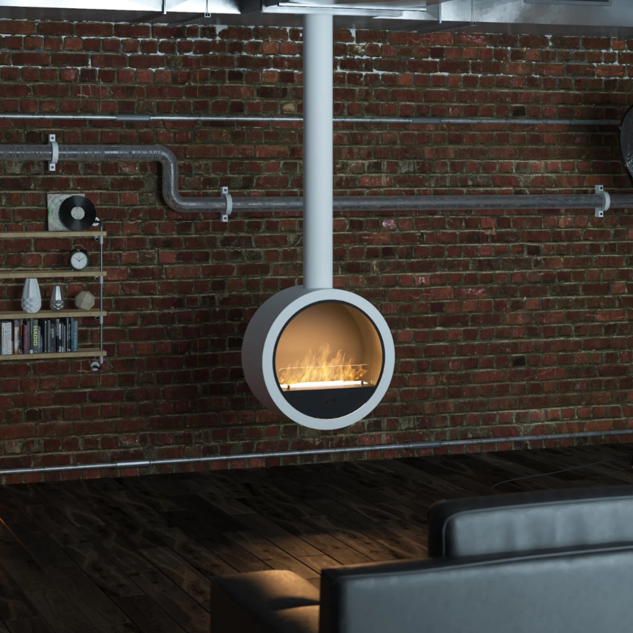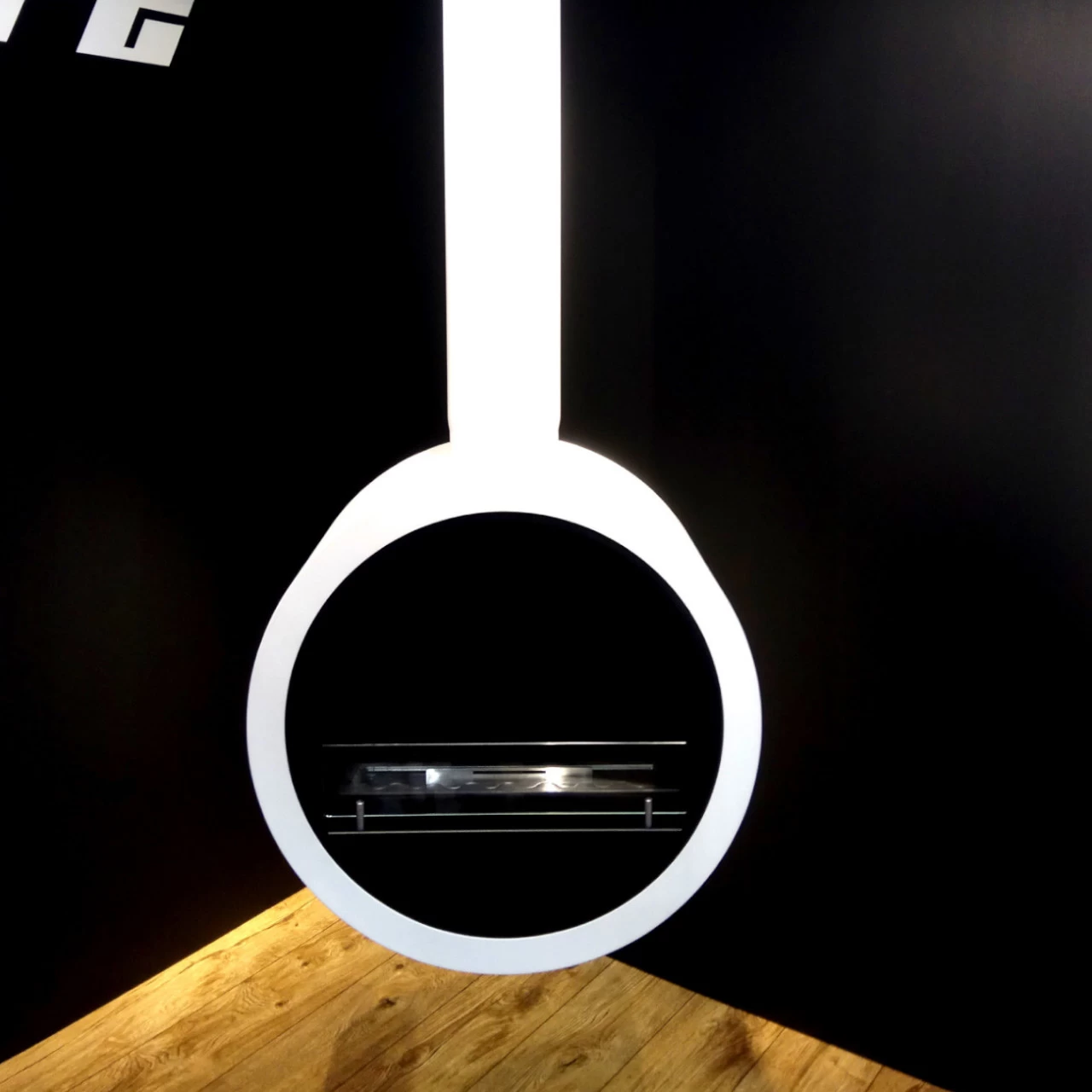 „Der Kamin INCYRCLE ist ein hängender Designer-Kamin, der an die Decke montiert wird. Seine Form fügt sich perfekt in den Innenraum mit modernem Charakter oder im Loft-Stil ein.“