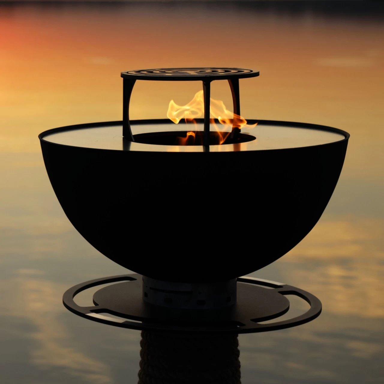 Die ästhetisch gefertigte und optisch mit der Gesamtform bestens integrierte Feuerstelle ermöglicht leichtes und einfaches Entzünden des Feuers, das zum Kochen und als Wärmequelle für die Umgebung benötigt wird.