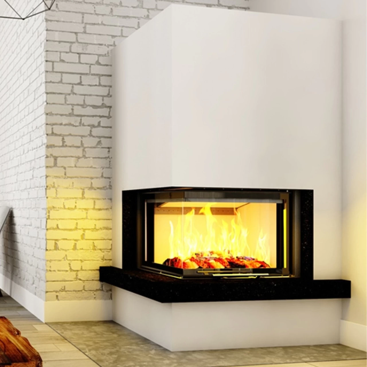 Modell: Hajduk Volcano WLTH 12 Wassergeführter-Kamineinsatz Links Verglast Steglos mit Rahmenloser Hebetür mit gebogenen Glas