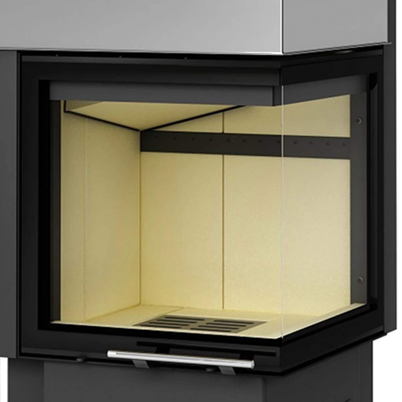 (2PTH Warmluft-Eckkamineinsatz Rahmenlose Hebetür)