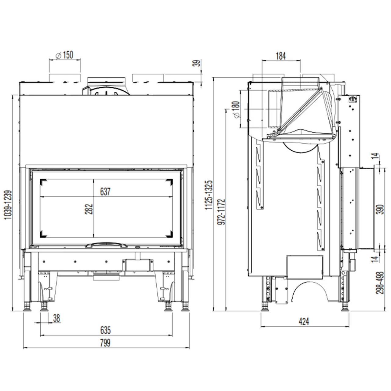 Modell: Austroflamm 75x39S Kamineinsatz 10kW gerade Scheibe Hebetür DIBt – mit verschiedenen Türhöhen (siehe Kamneinsatz 75x57S)