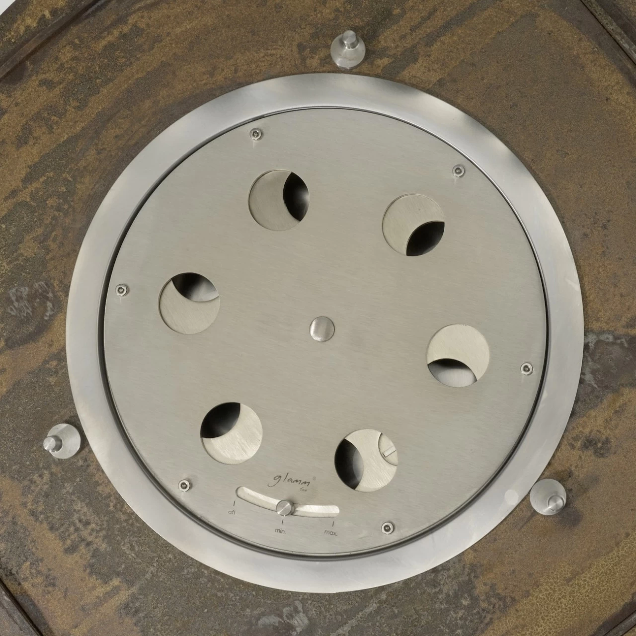 Schutzglas Klein: hochtemperaurbeständiges Rundglas mit Glashalterung (Maße: 31,5 Ø cm x 10,0 cm; Gewicht: 2 kg + 1 kg)