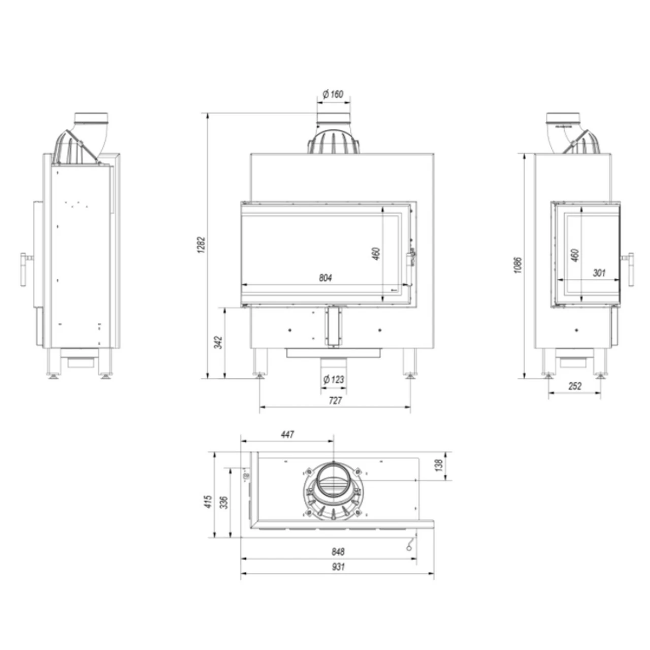 - Besonderheiten Kamin: Anschluss für Externe Luftzufuhr/ Frischluftzufuhr; Höhenverstellbare Füße;