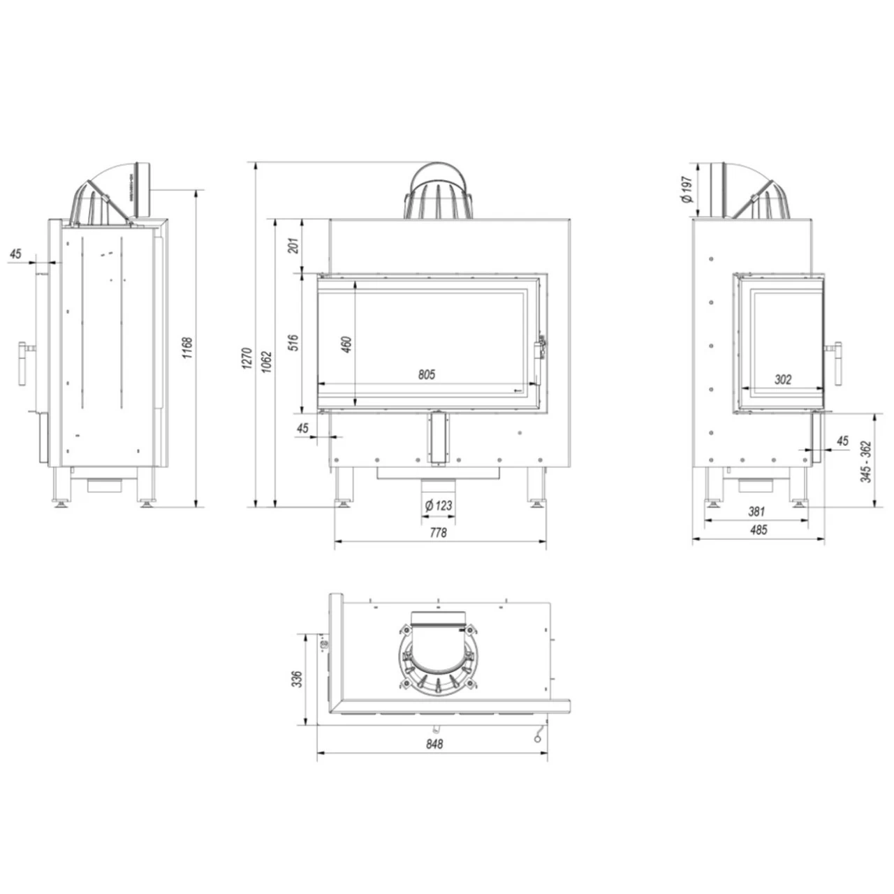- Besonderheiten Kamin: Anschluss für Externe Luftzufuhr/ Frischluftzufuhr; Höhenverstellbare Füße;