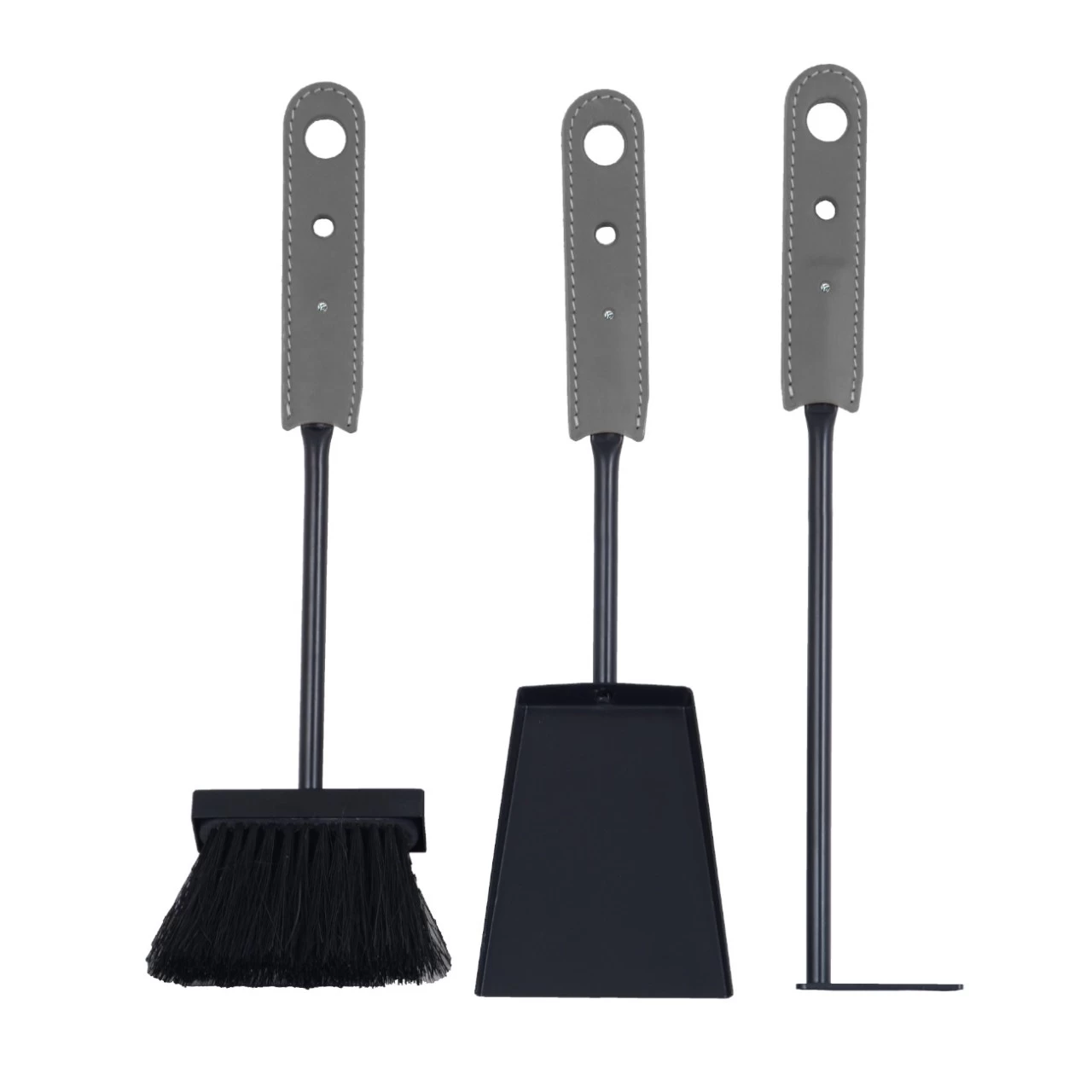 Das Kaminbesteck besteht aus einer Schaufel, einem Schürhaken und einem Besen, alles aus lackiertem Stahl. Vervollständigen Sie Ihren Kamin auf einzigartige Weise mit nützlichem Zubehör.