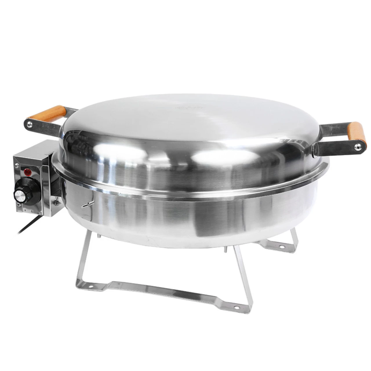 Das neue Retro Design des multifunktionalen Muurikka-Elektrogrill verfügt über stilvolle Beistelltische. Der Muurikka Electric Grill hat: einen Deckel aus Edelstahl, eine Grillplatte und eine Auffangschale aus Alufolie, welche die Reinigung erleichtert.