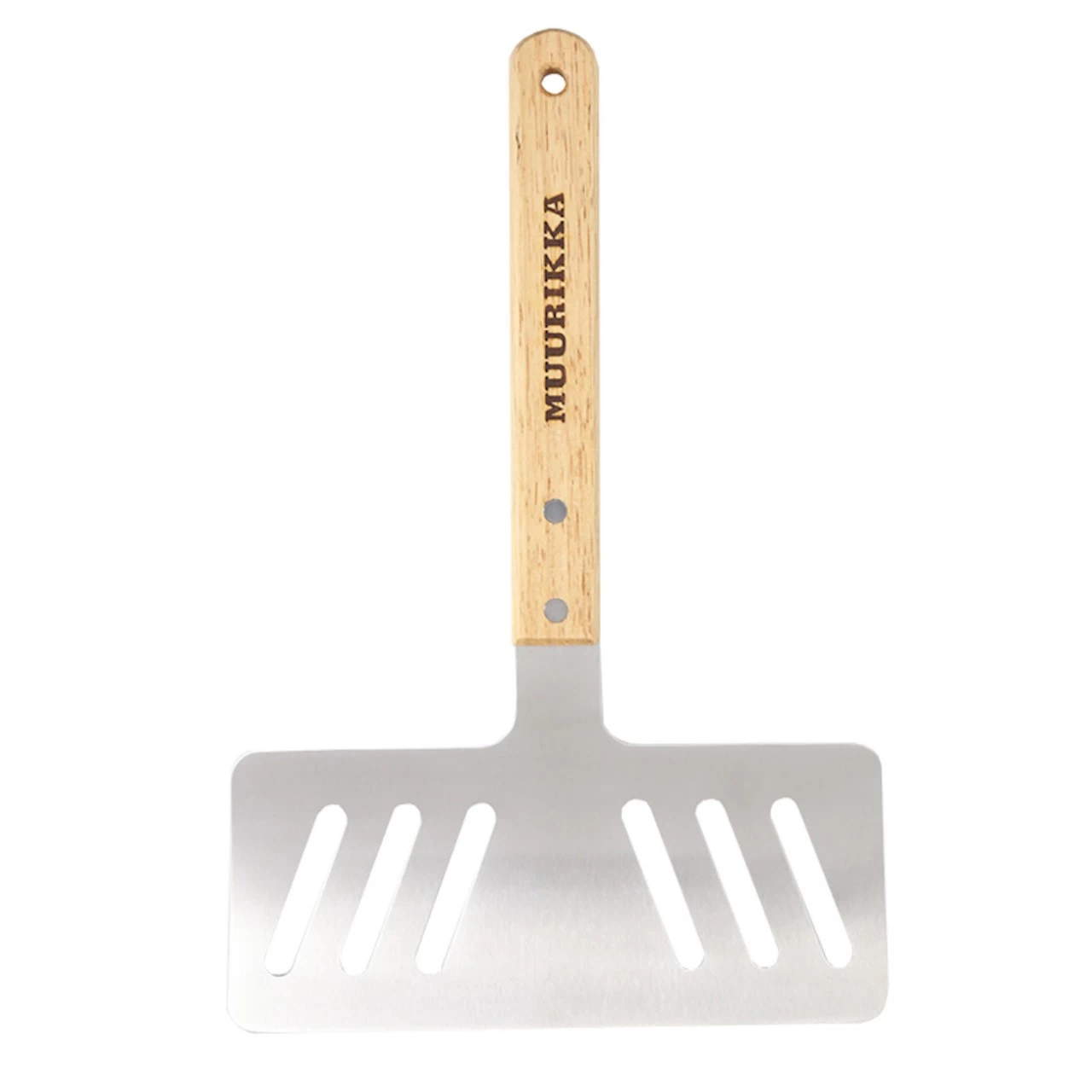 Breiter robuster Grillwender / Spatula der einen Guten Halt bietet und das Wenden von Grillgut erleichtert. Der Grillwender ist aus Edelstahl und der Griff ist aus Holz.