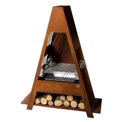Praktischer zweiteiliger Aufsatz aus Edelstahl und zusätzlich mit einem Rost zum Grillen ausgestattet. Die Form und Größe sind einerseits dem Kochgeschirr angepasst und erlauben andererseits das einfache Befüllen mit Holz.
