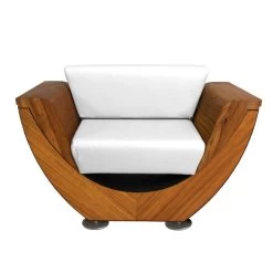Der Sessel ergänzt das Sofa und erstellt damit ein komplettes Erholungs-Set im Garten, Patio oder auf der Terrasse. Konturierte Armlehnen des Sessels sorgen für noch mehr Komfort. Dieses Möbelstück ist eine Kombination aus hochwertigem exotischem Holz und Edelstahl (Schwarz) oder Cortenstahl, was die Witterungsbeständigkeit erhöht. Auch die Reling, die die Rückenlehne bildet, ist ein Dekorationselement.
