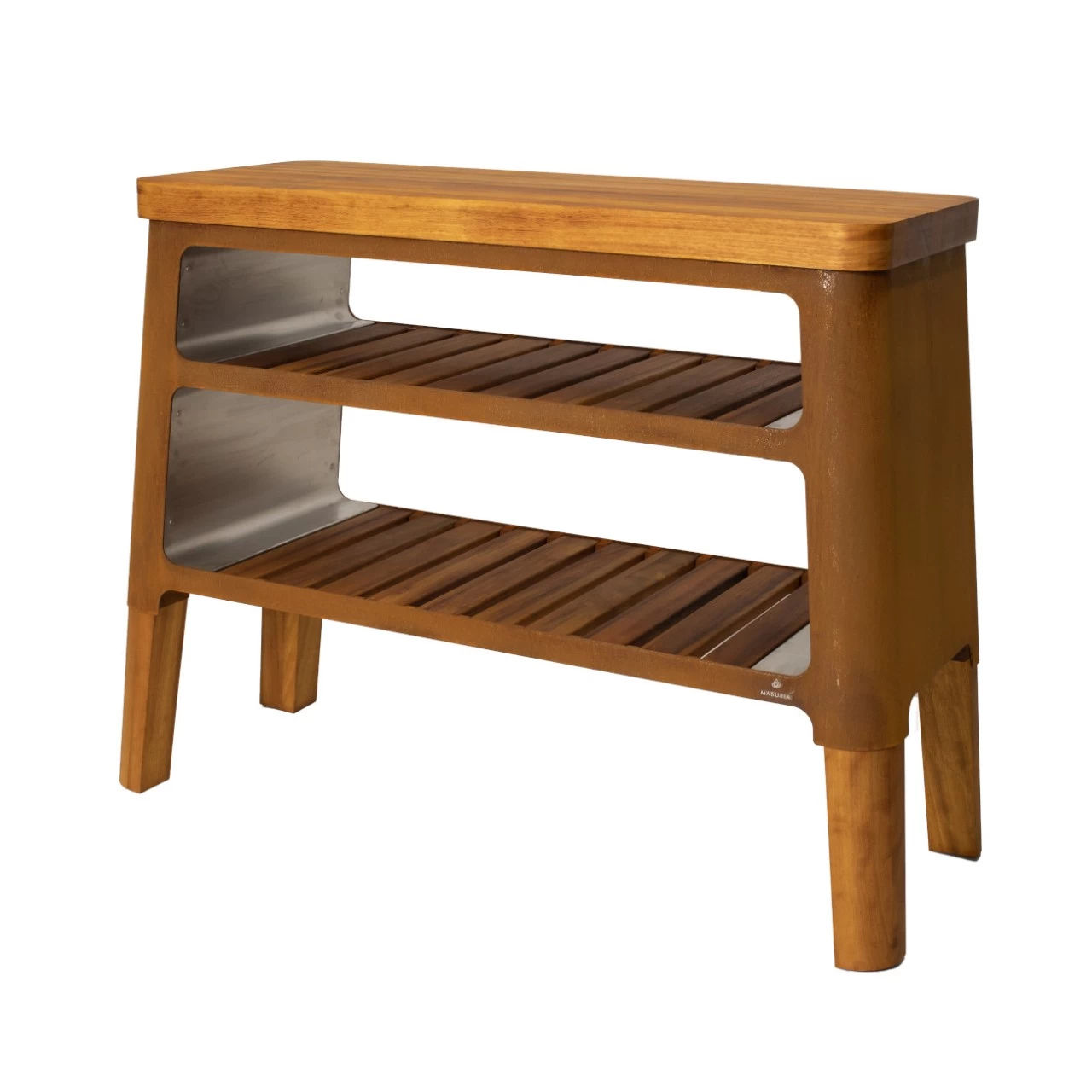 Material: Edelstahl, Cortenstahl und exotischem Holz