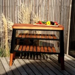 Jeder, auch der beste Koch, braucht einen Helfer, der die notwendigen Geräte zur Verfügung stellt oder die Zutaten zubereitet. Wenn man Gäste zu einem gemeinsamen Fest einlädt, ist es schwer vorstellbar, sie um Hilfe bei der Zubereitung von Gerichten zu bitten. Zur Hilfekommt dann der Grilltisch Nexo. Dank ihrer sorgfältig gestalteten Form braucht sie nicht zu viel Platz, aber gleichzeitig ist sie geräumig genug, um alle notwendigen Zutaten und Geräte aufzubewahren. Das feine Design harmoniert perfekt mit dem Kamin.