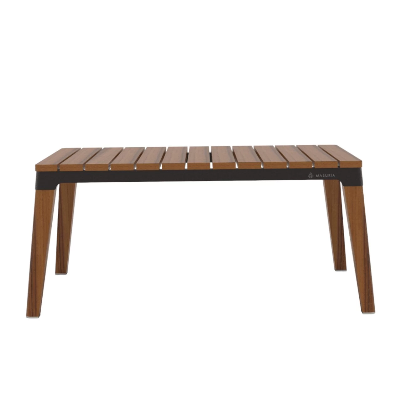 Der Tisch der Nexo-Serie ist aus hochwertigem Iroko-Holz und schwarzem Stahl oder Cortenstahl gefertigt. Der Tisch und der Rest der Kollektion bilden ein komplettes Set, das perfekt auf die Terrasse oder das Restaurant passt.