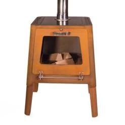 Die Feuerstelle ist mit herausnehmbarem Rost aus Blech in 4 mm Stärke und einem Aschekasten mit Luftzirkulation ausgestattet. Um den Nutzungskomfort zu vergrößern wurden die Kufen verstärkt, dadurch kann man die Feuerstelle auch eigenständig nutzen, außerhalb des Kaminofens.