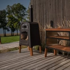 Die modernisierte Klassik, an die das Retro-Design erinnert, ist speziell für Liebhaber origineller und funktioneller Lösungen. Der Kamin ist mit einem Grillbrettmodul zum Backen ausgestattet, was ermöglicht, auf traditionelle Art und Weise unter anderem Pizza und Brot zuzubereiten. Ein zusätzlicher Vorteil ist die multifunktionale Feuerstelle, die unabhängig als Gartenfeuerstelle genutzt werden kann. Der modulare, vielseitige und moderne Holzofen mit innovativen Heiz- und Kochlösungen verbindet zwei Elemente des Kochens – Tradition und Funktionalität – und schafft ein Produkt mit traditionellem Aussehen, das sicherlich zu den meisten Außenbereichen passt.