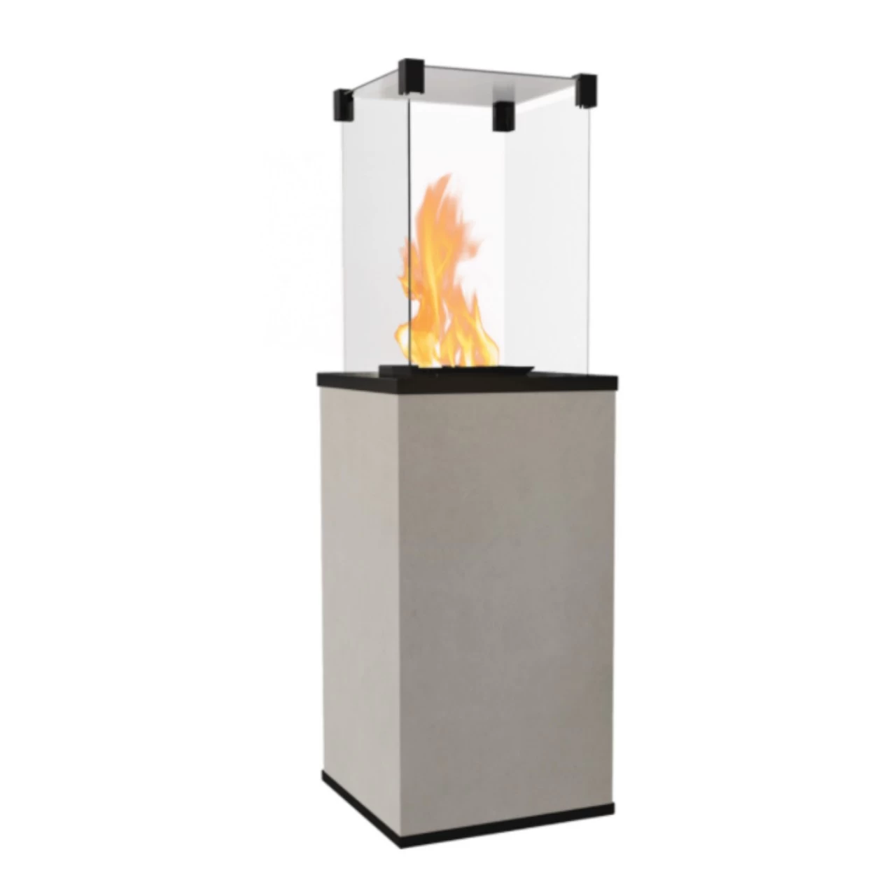 Der PATIO wird mit flüssigem Flaschengas versorgt, wo die Flasche sich elegant im inneren des Gehäuses befindet. Die Flammen sind in einer Glaskammer eingeschlossen, die vor dem direkten Kontakt mit dem Feuer schützt. Auf diese Weise können Sie das Flammenspiel genießen, wissend dass sich alles unter Kontrolle befindet.