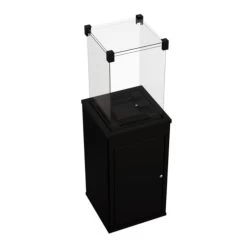 Das untere Teil des Gehäuses besteht aus Stahl und wird von drei schwarzen Glaspanelen ummantelt. Die vierte Seite ist mit einer Stahl Tür mit Schloss ausgestattet und beim Patio Mini mit einer Stahl Aushägetür.