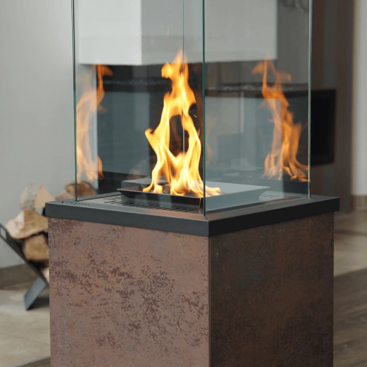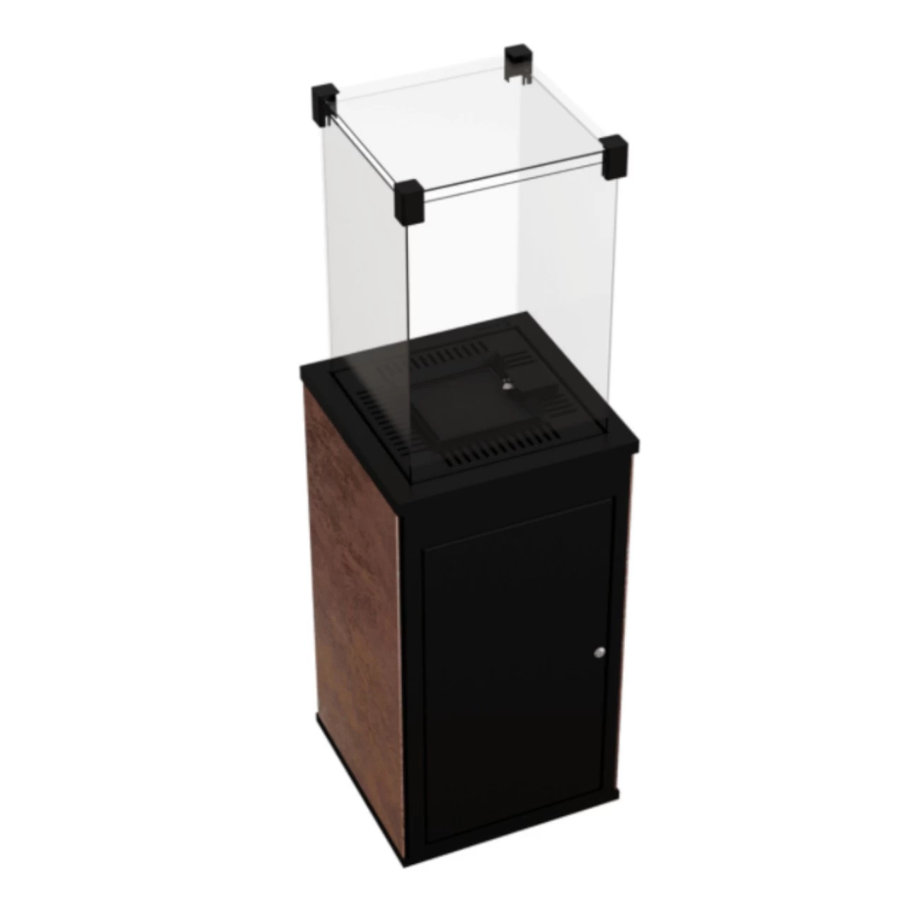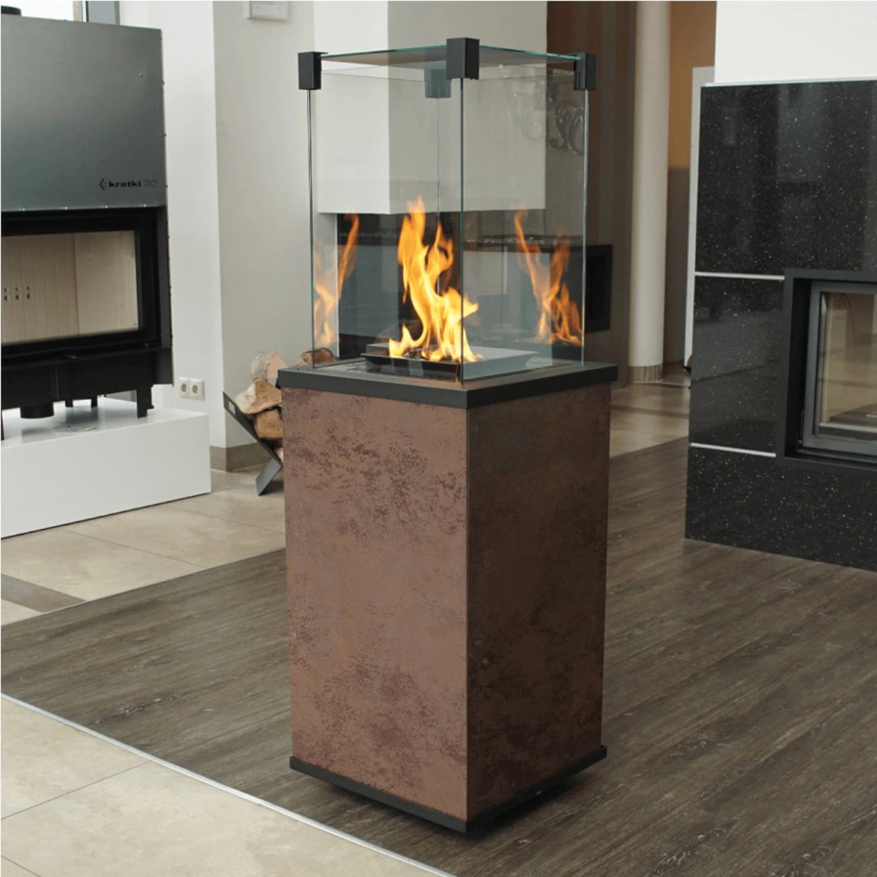 PATIO ein stilvoller Heizpilz, der Wärme und Licht überall dort bietet, wo wir eine einzigartige und gemütliche Atmosphäre schaffen wollen. Seine Besonderheit ist, aus allen vier Ecken kann das Feuer betrachtet werden. Dies macht ihn zu einem einzigartigen Terrassen- oder Gartenkamin.
