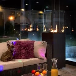 Der PATIO wird mit flüssigem Flaschengas versorgt, wo die Flasche sich elegant im inneren des Gehäuses befindet. Die Flammen sind in einer Glaskammer eingeschlossen, die vor dem direkten Kontakt mit dem Feuer schützt. Auf diese Weise können Sie das Flammenspiel genießen, wissend dass sich alles unter Kontrolle befindet.