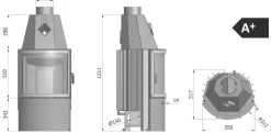 – Warmluftmantel: Bietet Ihnen die Möglichkeit die Warmluft in 2 weitere (Neben)Räume umzuleiten. Durchmesser abgehender Ausgänge: 125 mm