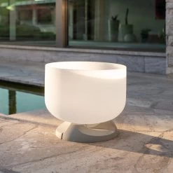 Die Eigenschaften dieses unbehandelten Materials vereinen die Kraft und die Wärme mit der Schönheit des Feuers. Die raue, opake Außenfläche bricht das Licht der Flamme und verstreut es diffus. Das Weiß der Glasschale verwandelt sich mit dem Feuer in einen unwiderstehlich gemütlichen Farbton und macht das Flair der Flammen spürbar. Durch die glatte Innenfläche ist die Glasfeuerschale leicht zu reinigen. Sie ist bis zu 1300 °C hitzebeständig und sollte vorzugsweise mit gut getrocknetem Holz benutzt werden.