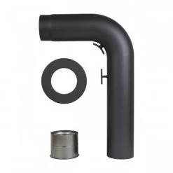 Ein Rohr mit gezogenem Bogen 90° mit Drosselklappe und Reinigungsverschluss zur Verbindung der Feuerstätte mit dem Schornstein. Der verschließbare Reinigungsverschluss dient zum reinigen und überprüfen des waagerechten Rohrteils. Die Drosselklappe dient als als zusätzliche Regulierung des Feuers bei zum Beispiel zu starken Schornsteinzug oder Brennstoffwechsel wie Kohle, Holzbriketts usw..