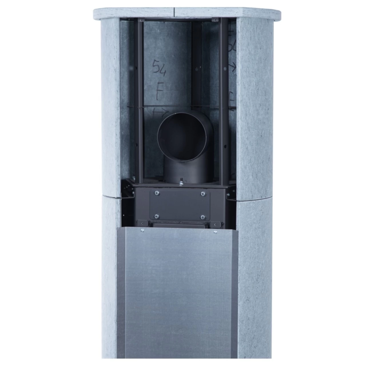 Die Kaminöfen Atika/Delia/Sevilla können entweder von oben oder von hinten an den Schornstein mit Rauchrohren angeschlossen werden.